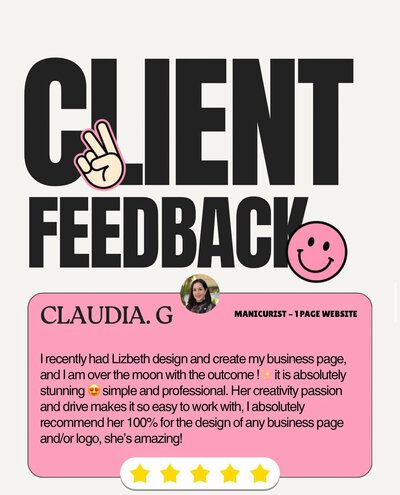 I recently had Lizbeth design and create my business page, and I am over the moon with the outcome !✨ it is absolutely stunning 😍 simple and professional. Her creativity passion and drive makes it so easy to work with, I absolutely recommend her 100% for the design of any business page and/or logo, she’s amazing!